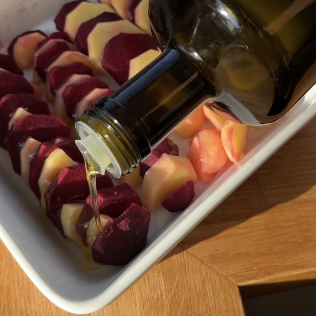 Pokrój je w plastry, polej oliwą, posól, popieprz, posyp ulubionym ziołem i wrzuć w piekarnik na 30 minut w 180 st.